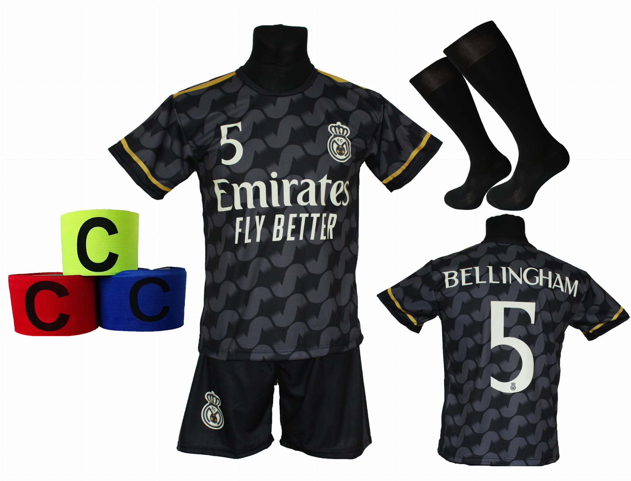 strój piłkarski dla dzieci Bellingham kolor czarny + opaska