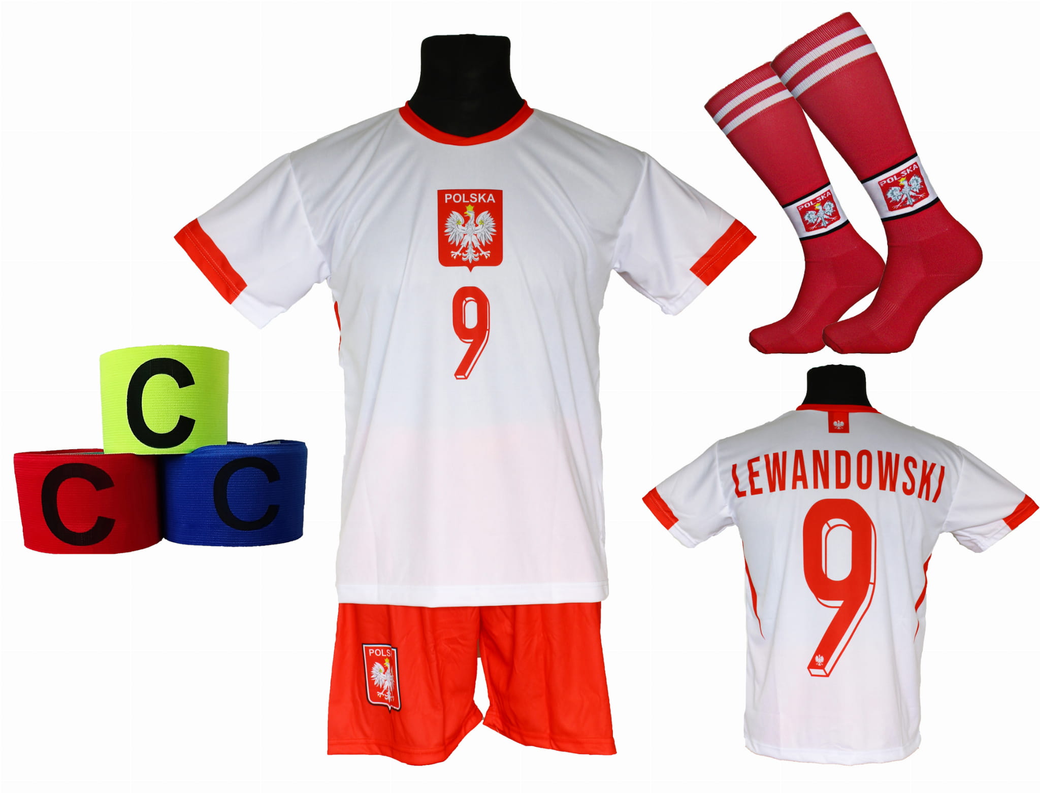 strój piłkarski dla dzieci Lewandowski Polska + opaska