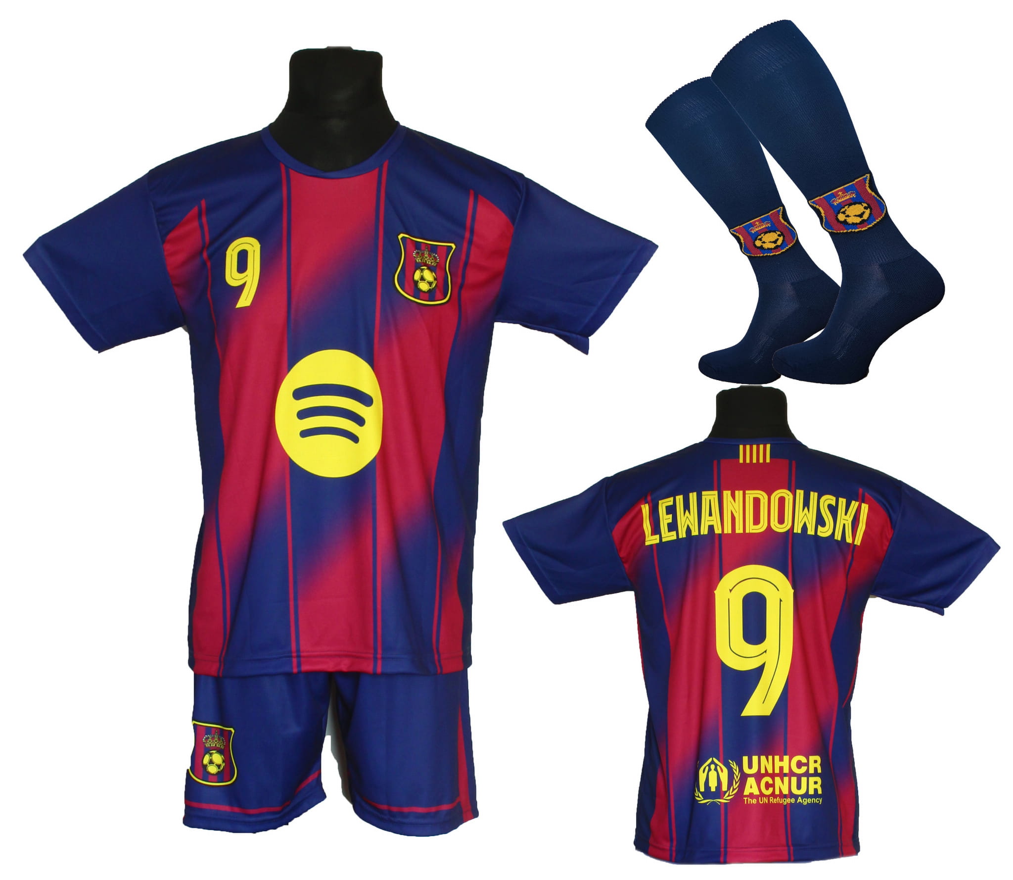 strój piłkarski dla dzieci Lewandowski bordowo-granatowy