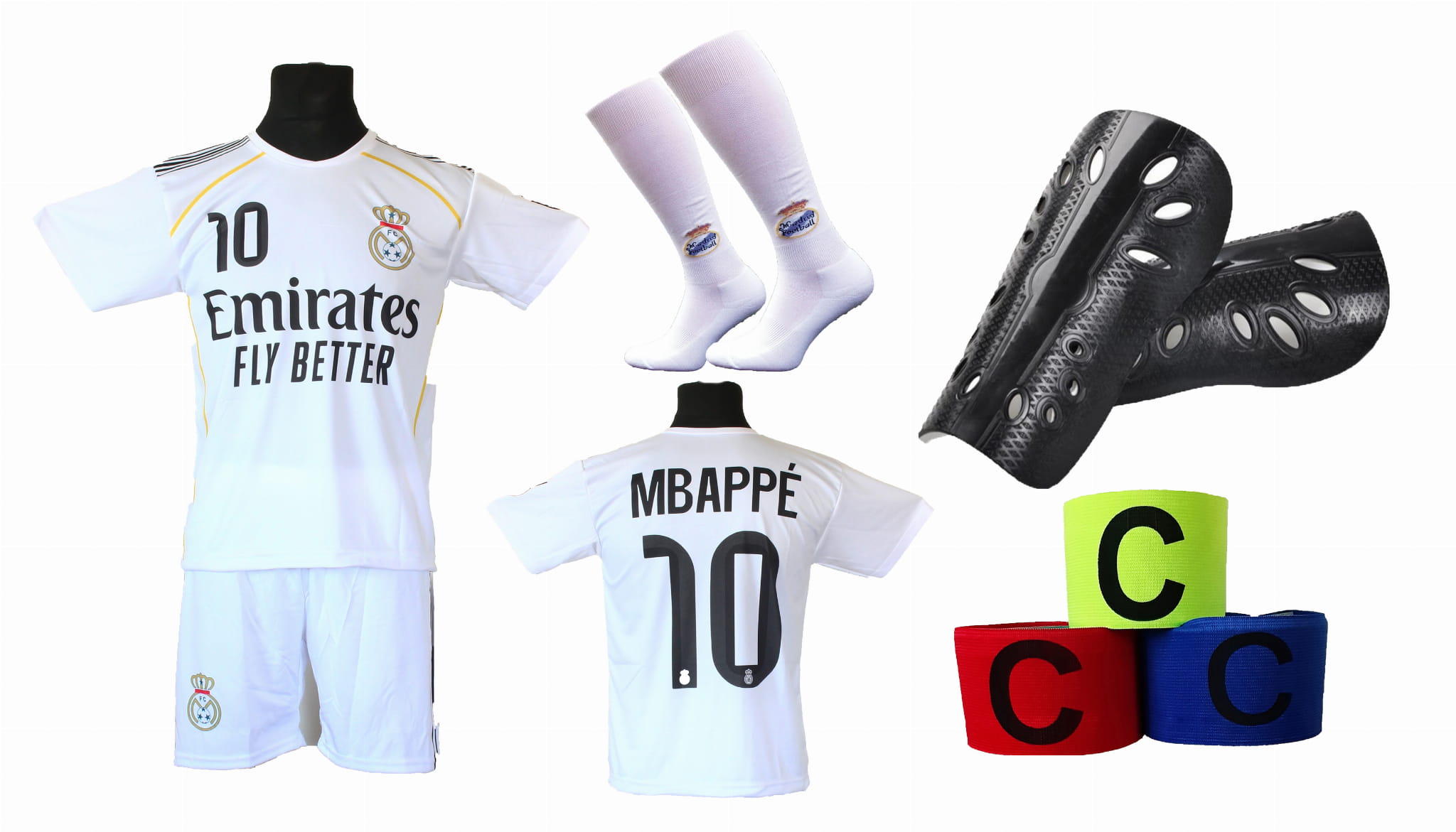 strój piłkarski dla dzieci Mbappe kolor biały + dodatki