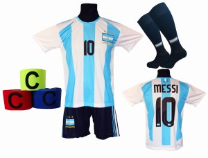 strój piłkarski dla dzieci Messi biało niebieski + opaska