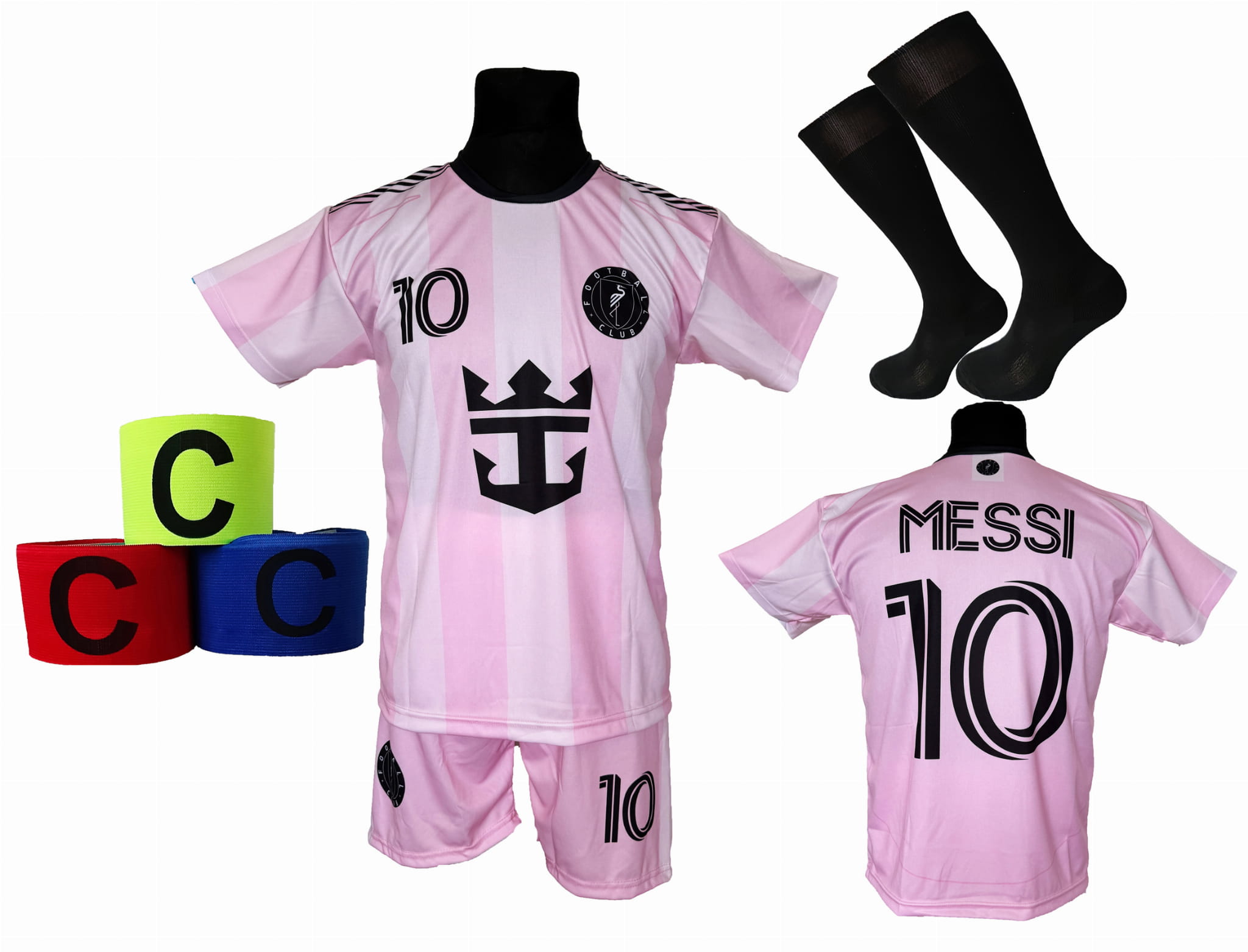 strój piłkarski dla dzieci Messi kolor różowy + opaska