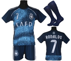 Strój piłkarski Ronaldo dla dzieci granatowy – komplet z getrami