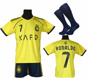 Jeśli szukasz produktu takiego jak żółty strój piłkarski dla chłopca, komplet piłkarski Ronaldo dla dzieci lub strój piłkarski dla dziecka z getrami, ten model będzie bardzo dobrym wyborem. To dziecięcy strój piłkarski, który dobrze sprawdzi się podczas treningów, zabawy i codziennych aktywności.